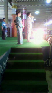 おはようございます書ける時間のあるうちに、頑張ってブログ更新しなければ日が経つとだんだん思い出すのも大変になってくる・・・一行でもいいから、頑張って毎日更新しなきゃ!と思う今日この頃ですえ~と、大きなイベントでは、6月12日(土)と14日(月)は、私の大先輩、奥山えいじさんとジョイントミニライブ「山形クボタ サマーメッセ」にて歌って来ました初めて呼んでいただきましたが、展示場の広さやお客様の多さに圧倒されました私はスケジュール上12日、14日の2日間お引き受けしましたが、実は11日から15日までの5日間連日イベントなのに、毎回こんなにお客様がいらっしゃるなんて!!山形クボタさんの偉大さと、農家の方々の多さを実感した2日間でした。トップで歌われた奥山えいじさんさすがでしたトークは面白いし、歌はもちろん完璧なんとも言えないイイ声なんです先輩のショーは本当に勉強になりました2日間ですがご一緒に歌わせて頂き、本当に光栄でした~奥山えいじさんの『お酒がしみる』合わせて宜しくお願い致します 日付けは前後しますが、12日のミニライブが終わってから一旦赤湯温泉に夕食がすんご~く美味しかったのに、写真撮るの忘れてしまったホントに美味しかったんですよ少しゆっくりした後は、自称置賜支部天音里望勝手応援団()と名乗る、とってもお世話になっているファンの方(Hご夫妻)のはからいで、赤湯のスナック再会さんにて歌って来ました本当に沢山の方に集まっていただき、歌の大好きな方々と触れ合ってきました楽しく幸せなひとときを過ごさせていただき、ありがとうございましたHご夫妻、再会のママさんに感謝ですさてさて、旅館に戻って夢の世界へ***翌日13日(日)は、赤湯を朝8時に出発庄内鶴岡まで、およそ2時間半その日は白山地区の敬老会にお招き頂きました地元の応援団スタッフの方も沢山来てくださり、CD販売もして頂きました30分ショーを終えたらすぐまた次の会場へみちのくレコードから「親父(おやじ)」でデビューした、村上しんごさんのショーの応援に、友情出演として歌わせていただきました昼夜2回の公演だったのですが、またまた私は山形行きだったので、昼の出演だけで御免していただきました15日は羽黒町の「JA年金友の会」さんに呼んでいただきミニライブをと、大きいイベントが連日続き、気も張っていたのか、その後はがく~~~んと疲れがさすがにしばらく眠い日が続きました・・・うちにいても、何かとやること、やらなければいけないことがあって、なかなかゆっくり落ち着けませんが忙しいのは有り難いことと、気を引き締めて次に向かいますさて、パート3は一昨日の「歌謡新人王大会」の話をつまみつまみでも、今日は一気に書いてしまいました読むのにも疲れますよねすみませんではまた!ごきげんよう~