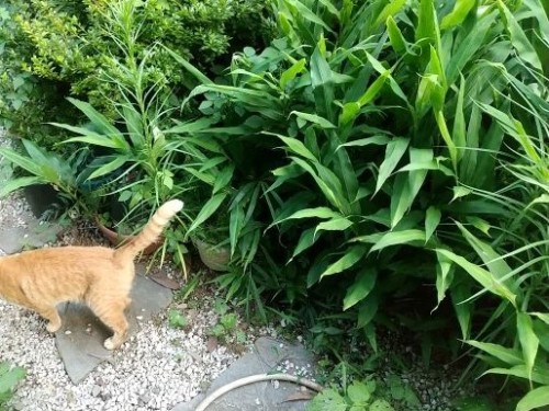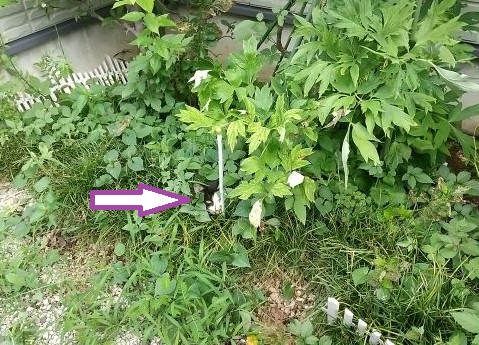 30日は日差しが見える時間はあっても雲が多く、夜には小雨も降ったさいたまです ↑ 矢印の部分に、見えるでしょうか ↑ 雑草の中に隠れている白黒姐さんです 『あ~ん』って鳴き声が聞こえて、どこにいるのかと思ったら雑草の中に。 ↑ 草の中もヒンヤリしていて、野良ニャンたちのいいベッドになるようです。 でも、そろそろ草むしり頑張らなくては ↑ 猛暑前にキレイにした通路も、すでに雑草まみれです 特にツル性のヤブガラシが厄介です。草むしりに終わりはありませんね。 夏の雑草たちはタネをこぼす季節……。 ちょっと時間を見つけて、ガッツリ草むしりしなくてはです