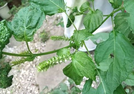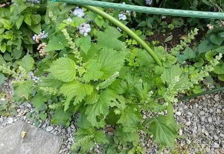17日の昼間は日差しが強く、午後から雲が増えたものの蒸し暑かったさいたまです ↑ 虫食いの青シソですが、穂紫蘇(青シソの花)がたくさん伸び始めました お刺身の飾りや市販されている穂紫蘇は赤シソのピンクの花が多いですが、これは青シソの白い花の穂紫蘇です。 去年も今頃に伸び始めていました。 ↑ まだまだ蚊が多いので、虫除け対策をして収穫 ↑ まだ長い穂紫蘇は少ないですが、次々伸びてくるので収穫しました 花が咲いている内は軸の部分も柔らかく食べられます。 花が落ちて実が膨らむころには軸が硬くなるので、シソの実だけ削ぎ落して醤油漬けなどにして楽しみます♪♪ ↑ 他の野菜がゴチャゴチャしていますが、青シソと穂紫蘇は天ぷらに 毎年、穂紫蘇は天ぷらにしたり、シソの実を醤油漬けやシソ味噌にして楽しんでいます。 今年もたくさん収穫したいです(*^^)v 庭仕事も畑仕事もサボりまくりですが、季節の味覚は逃さないようにしたいものです。しその花穂! 穂紫蘇(花穂・ほじそ・穂じそ) 1枚 本日の家ニャン ↑ 風の通る床でゴロゴロするグレー子姉ちゃん シャッター音で視線をくれました