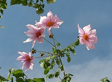 8日は空気ヒンヤリでも昼間の日差しは暖かかったさいたまです ↑ 今年も、無事に皇帝ダリアが開花してくれました 青空を背景に写真が撮れて嬉しいです ↑ 夏の間にぐんぐん背が伸びて、晩秋に開花する多年草 木のように大きくなりますが、霜が降りると枯れてしまう宿根草です。 陽が短くならないと花芽が育たないので、早霜で開花前に枯れてしまうことも。 花数は去年の方が多いですが、今年も無事に開花が見られて嬉しいです(*^_^*) ↑ 先月末から、菊の花もたくさん咲いています これから花が少ない枯れ庭になっていきますが、少しでも花が見られる庭にしたいです。 次はスイセンが咲いてくれるかな(*^_^*) 本日の野良ニャンズ ↑ 天気がいい日は一緒にお散歩 白黒姐さんはあまり変わりませんが、茶ロング君は冬毛と皮下脂肪でとても肥えています そして、今週のカクヨム(無料小説サイト) 『彼女の左手に』という恋愛短編を投稿しています 亡くなった彼女の手が見えるようになって……という、ちょっとホラー要素ありの短編小説。 ハッピーではないものの、バッドではないエンドになります。