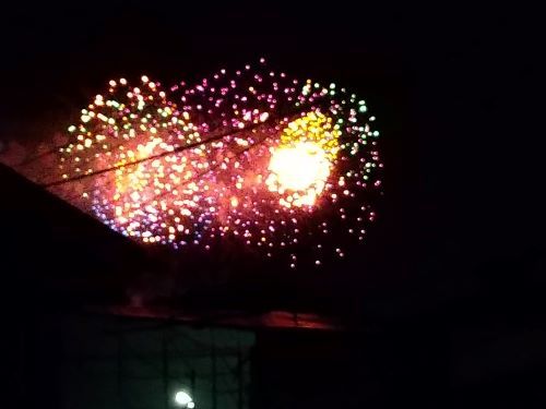 24日は時々青空は見えても雲が多く、小雨もパラついたさいたまです 市内でもけっこう降っていた場所もあるのだそう 蒸していても風は強めで、一時期と比べるとずっと過ごしやすくなりました。 ↑ 23日の夜に、さいたま市でも花火が上がりました 去年に引き続き、感染予防のため無観客で場所と日時を知らせずに5分ほど花火が上がる事になっていました。 でも今年は23日と知らせの出ている地域もあったとか。 去年は8月19日でした。去年の写真の方がよく撮れています(>v<) ↑ 5分強の間にパシャパシャ撮ってみましたが、ピンボケばかりでした(笑)。 広いさいたま市内の三か所で同時に上がったので、他の場所の音も聞こえていました。 あちこちで規制緩和というか、自己責任にゆだねたイベントが再開されていますが、全く喜べない感染者数の多さです。 さいたま市は、今年も無観客で正解だったと思います。 でも、先日に野球場だかサッカー場で花火が上がり、さいたま市の花火大会が日時不明だったので紛らわしかったです(笑)。 来年こそ本当に感染者数が落ち着いて、夏のイベントも安心して開催されるといいですね。 本日の家ニャンズ 『ビックリした~~』 ↑ 花火の音にビックリして、ベッドの下に隠れていたグレー子姉ちゃん ↑ クツシタちゃんも珍しく、ゴチャゴチャしたところに隠れていました 『急に花火、始まった~!』と、私がベランダにドタバタ出たりしていたことに驚いたようです。