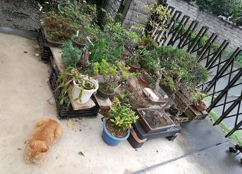 7日は時々雲が見えても日差し時間もあり、昼間は暖かかったさいたまです ↑ 4月末ごろのシャクナゲとエコキュート。 二世帯住宅のエコキュートのひとつが壊れてしまい、交換することに。 新しいものは左側に室外機が置かれるようで、シャクナゲを移動させなくてはいけないことになりました。 西洋シャクナゲ『桜狩』は、2020年の2月末にお迎えして同年4月末には満開になりました。 買ってきた植木鉢は小さかったので同年11月に一回り大きい植木鉢に植え替えていましたが、土がよくなかったのか植え方がよくなかったのか2021年の春には花が咲かず、2021年10月半ばにこの場所へ定植していました。 今年は4月半ばからキレイな花を見せてくれましたが、また植え替えすることになってしまいました。木をあまり傷めずに移植できると良いのですけど ↑ これは初夏のころの写真ですが、この辺りに移植することに。 裏庭ガラクタ置き場の、野良ニャンたちの溜まり場 茶ロング君が寝転がっている真上辺りに植わっているアジサイを、もっと奥に移植させて手前にシャクナゲを移植することに。 ↑ 現在の様子 アジサイを少し奥へ移動させて、開いた地面をさっそく白黒姐さんがおトイレにしていました。 アジサイの移植ついでに剪定と、横で伸びまくっていた桃の木もバッサリ剪定しました。 ↑ 桃の葉の紅葉? とりあえず、シャクナゲの移植先は用意できたので、早めに植え替えようと思います。 まだエコキュートの工事日は未定ですが、やっぱり本体の仕入れに時間がかかるようです。 本日の野良ニャン ↑ やっぱり、土の柔らかい場所の方がおトイレしやすいようです ちゃんと埋め埋めしておいてね~~