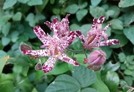 13日は台風8号の影響で雨風が強かったさいたまです 午前中には台風なのに雷が鳴り響きました でも風は昨日までの方が強く、今日は風が少なめの豪雨になりました 明日は台風一過でまた暑くなりそうです。 ↑ 先日、コオニユリが開花しました 風が強くて花が揺れまくるので、手で押さえながら撮りました でも、百合の花は写真が難しい形をしていますね。 ↑ 8月初めから咲き始めた赤カノコユリも、ボチボチ咲き進んでいます 奥まった場所で咲いているので、ズームで撮っています。花殻切りもサボりです 暑すぎてもなかなかツボミが開かないのかしら(?v?) 花の無い庭なので、少しずつ長く楽しませてくれるのは嬉しいです。 ↑ 夏の百合リレーは、とうとう最終ランナーのタカサゴユリを残すのみとなりました タネで増えるタカサゴユリは庭のあちこちでツボミを膨らませているので、開花が楽しみです。ユリ コオニユリ(橙/黒点)【球根】1球入り袋詰め_ユリ_ゆり_百合_秋植え_球根_販売_通販_ 本日の家ニャンズ ↑ ドアの前で、おやつタイムのアピール 8月に入って1日置きのブログになっています 夏場はホラーに飢えていて(笑)、読みたいし書きたいし 無料小説のカクヨムで怪談『ミジカイダン』を毎日投稿しています。短い身近な怪談集です。 お恥ずかしい文章力ですが、もしご興味あればチラ見して頂けると嬉しいです。