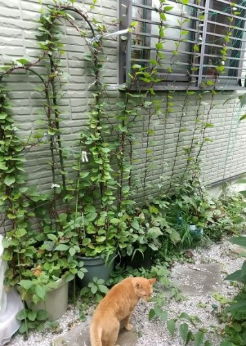 15日は雲が多めでも、時々日差しも見えて気温は上がったさいたまです ↑ 植木鉢で育っているツルムラサキ(赤茎) 種蒔きはせず、前年も育てていた植木鉢にこぼれたタネから毎年勝手に発芽して育ってくれます。 ツルムラサキの緑茎はツルが太く葉も大きくなって食べ応えありますが、ツルの成長がゆっくりなので夏の間にタネ取りまで間に合わないことがあります。 ツルムラサキの赤茎は葉が小さいものの、ツルがよく伸びて花穂も実も付きやすいのでこぼれ種で毎年育てる事ができます。 今年も、花穂が見え始めています ミニトマトやゴーヤもキュウリも、夏野菜は不調ですがツルムラサキだけは元気に茂っています。 キッチンの窓のグリーンカーテンとしても成長中です。 ↑ キッチンの窓際はかなりの高温になるので、もう少したくさんツルを伸ばしてほしいです。 ↑ 窓から離れた部分の葉は、ちょこちょこ収穫して楽しんでいます。 ↑ おひたしや胡麻和えなども美味しいです 今年は夏野菜の収穫が少ないので、これだけでも安定して食べられるものがあるのは有難いです。トーホク つるむらさき 赤茎 種 生産地:栃木県(家庭菜園 蔓紫 夏野菜 種子 ツルムラサキ たね タネ) 本日の野良ニャン ↑ 茶ロング君も、ちょこちょこ遊びに来てくれます 通路の雑草は水やりなどしていなくても元気ですね。 もう何日かすれば少し涼しくなりそうなので、また草むしりも頑張らなくてはです。