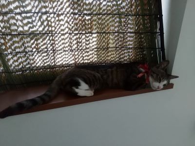 3日は徐々に雲が増えても、厳しい猛暑の一日だったさいたまです ↑ 午前中の日差しが強いので、よしずを立てている窓 朝は割と居心地がいいことに気付いたらしいクツシタちゃんです ↑ 階段の上のこんな場所ですが、高い所が好きなクツシタちゃんはくつろいでいます 温かいのも好きなので34度くらいなら、エアコンの効いた部屋よりも快適のようです。 グレー子ちゃんは猫なのにちょっとニブいので、高い所は苦手です。 ↑ おおあくび~~ 寝ぼけて落っこちたりしないでよ~(^_^;) ↑ 西日のあたるキッチンの窓際は、午後になると平気で40度を超えます。 これから数日間は、猛暑も落ち着く予報ですが、まだまだ8月も始まったばかりなのですよね。 もう夏の暑さは長いこと続いているように感じます
