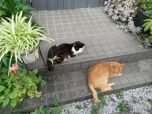 22日の早朝は小雨がパラついたものの、昼間は日差しが眩しかったさいたまです 8月にゃんにゃん日、涼しい場所でくつろぐ野良ニャンズの様子です ↑ 風通りがよく、ヒンヤリしている玄関タイルの上でくつろぐ野良ニャンズ 猛暑が続いていた頃は別々に避暑スポットを移動していましたが、残暑らしい気温になってまた一緒に行動するようになった仲良しニャンズ。 ↑ 白黒姐さん、けっこう舌ベロ出てる~~ ↑ ちょんちょんしても、引っ込まない舌ベロ ↑ 茶ロング君も時々舌ベロしまい忘れていますが、今日は大丈夫 早く過ごしやすい秋になるといいね ↑ 家ニャンズも、風の通る廊下で仲良く遊んでいます クツシタちゃんからグレー子姉ちゃんにちょっかいを出すのに、カメラを向けると冷めちゃうのかしら。
