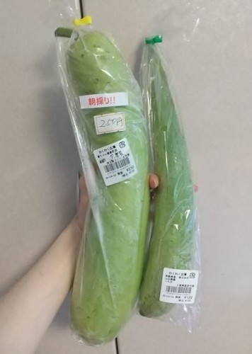 19日はスッキリ青空が広がり、久々にカラッとしていたさいたまです 気温は高めでも、湿度が低いだけで過ごしやすく感じるものですね。 明日からはまた、ジメジメと蒸し暑さが戻る予報です(>v<;) でも、なんとなく夕方の風は、秋に近付きそうな予感がしなくも無いような(笑)。 ↑ 先日のヘチマと同時に『夕顔』を発見 私の腕の太さと同じくらいのヘチマより太くて、大根と間違えそうな見た目です。 夕顔と言われると、朝顔や昼顔に似たような花が咲きそうなイメージですが見た事ありません。 花より源氏物語が思い浮かびますが、青首大根のような特大のウリが実るのですね。 安いし、浅漬けなど美味しそうな気がしたので買ってみました。 食べ方を調べてみると、浅漬けや煮物、炒め物、みそ汁、天ぷらなど何でもOKな野菜なのだそう。しかも冷凍保存可能とのこと。 そして、花を楽しむ夕顔とウリ科の夕顔は別物とのこと。 この瓜の方はカンピョウの材料なのですね。 ↑ 皮はむかなくても食べられるそうですが、ちょっと傷があったのでピーラーで薄くむきました。 ↑ 中は真っ白です。ヘタの部分が少し硬かったので、上の方をガシッと切り落としました。 ↑ タネは少し硬そうです。 見た目ではわかりにくいですが、タネの周りのワタは美味しいのだそう。 なので、ギザギザのついたスプーンで取りすぎない程度にタネを削ぎ取りました。 ↑ スライスして少し冷凍もしてみました。 すでに凍ってしまっていますが、普通のビニール袋に入れてしまいました(笑)。 使いやすいように、ジップロックに入れて平べったくして凍らせれば良かったです。 ↑ まずは浅漬けにしてみました 撮る前に食べ始めてしまったので微妙な写真ですが、美味しさに驚きました。 ナスとキュウリの中間のような食感……ちょっと違うかな。 サクッとしてプルっとして、カボチャやトウガンとも違います。 浅漬けの素で漬けましたが、塩漬けでも味噌漬けでも糠漬けでも合いそうです。 はじめてお目にかかる夕顔。 すごく気に入ってしまったので、また買いに行って、冷蔵庫にもう2本入っています 天ぷらや煮物も試してみたいです(*^^)v野菜種子 ウリ種 『 渡辺採種場 』 大長夕顔 1dl袋詰 【 送料無料 】 本日の野良ニャン ↑ 夕方、カーポートの屋根の上に茶ロング君を発見 風の気持ちいい場所をよく知っています。