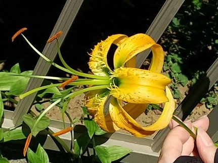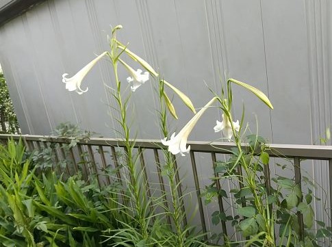 21日の昼間は蒸し暑かったものの、風があってわりと過ごしやすかったさいたまです ↑ 夏の百合リレーの最終ランナー、タカサゴユリが咲き始めました ↑ 長く伸びた先がパカッと開く白い花です。 ↑ ちょっと咲き方が怪しい? 変なツボミもありますが、たくさん咲き出しました。 ↑ 花の後ろ側から 外側は真っ白でなく、薄ピンクのスジが入ります。 地面に花殻が落ちていますが、花は終わると中の雌しべを残して落ち、タネができます。 地中に球根はありますが、タネを飛ばして増えるタカサゴユリ。タネから発芽し、数年かけて球根を膨らませながら立派な花を咲かせるようになります。 ↑ 8月初めから咲き始めた赤カノコユリは、とうとう一番上が咲きました 低い位置から咲きだして長期間楽しめましたが、満開の様子も見てみたかったです。 草ぼうぼうの中に、地植えのヤマユリとフロンテラも残っています。 そろそろ草むしりしてあげないと、球根が栄養不足になるかしら。 一時期の猛暑は落ち着いてきたので、そろそろ庭仕事を再開しなくてはいけませんね(山野草)ユリ(百合)タカサゴユリ(高砂百合)実生苗 3号(1ポット)(山野草)ユリ(百合)ヒメタカサゴユリ(姫高砂百合)苗 3号(1ポット) 本日の野良ニャン ↑ 風通りのいい裏庭通路のコンテナの上に茶ロング君 避暑地を移動するだけだった野良ニャンたちも、猛暑が落ち着いて行動範囲が元に戻ってきました。