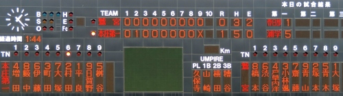 ■今日(7月20日)は、埼玉県大会4回戦、浦和学院高対春日部高戦を観戦した。(写真)スコア1回裏、浦和学院の切込み隊長・竹村春樹が右前安打を放ち出塁する。初回の得点率が異常に高い浦和学院(データを調べたわけではないけれど、ほぼ間違いない)にあって、出塁率の高い竹村の存在は大きい。そして二進後、3番・山根佑太の打球は平凡な三ゴロ。ところが春日部の三塁手は一塁へ悪送球し、竹村がホームイン。浦和学院は労せず1点を先制した。なんとしても先制点を譲りたくない春日部だったが、思わぬエラーが「流れ」を浦和学院に追いやった。その後は浦和学院・小島和哉、春日部・橋本龍之介の両投手が踏ん張り「0」行進が続いたが、6回裏、浦和学院は突き放しに成功する。この回先頭の2番・贄隼斗が死球で出塁。次打者の送りバントで二進後、4番・高田涼太の放った打球はグングン伸びて、懸命にバックするセンターの頭上を越えた。そしてセンターが打球処理を手間取っていると見るや、高田は三塁も蹴って一気に本塁に生還した(ランニング本塁打)。さらに浦和学院は7回裏、1番・竹村、2番・贄の連続適時打が飛び出しダメを押した。 (写真)浦和学院・高田涼太が中越えのランニング本塁打を放つ■実はこの試合、ノーヒットノーランの大記録を賭けて投球していた投手がいた。浦和学院のエース・小島和哉だ。特に制球が抜群で、8回終了時点まで被安打0、奪三振12、与四死球1。最終イニングを迎え、さぁ大記録達成か? と期待したが、小島はライトにまわり、代わって山口瑠偉が登板した。「えぇ~???」。どよめきが県営大宮公園球場のスタンドを包んだ。だが浦和学院ベンチからすれば、県大会4回戦レベルでの大記録など何の意味もない、下手に記録を達成したら、逆に小島の今後の調子を狂わせるとでも考えたのだろうか。これまでの野球観戦において、ボクは目の前でノーヒットノーランを見たことがない。だから9回表開始前は、達成した瞬間の小島の表情をぜひ撮りたいと、あれこれ考えていたから残念でしかたがなかった。※今日、同じ球場の第3試合で花咲徳栄高・関口明大がノーヒットノーランを達成した。ボクはこの試合を見ていたが、途中で帰宅してしまい、大記録達成の瞬間を見逃してしまった。浦和学院の小島とあわせ、いったい何という日なんだ、今日は!(写真)浦和学院・小島和哉。ノーヒットノーラン達成間近だったが、9回、非情の交代(写真)9回から登板した浦和学院・山口瑠偉。今日も不安定な投球で1点を失った■一方、春日部は橋本龍之介の投球も悪くなかった。浦和学院打線を相手に6回2/3を投げて被安打5、奪三振2、与四死球2。ただ先頭打者を出塁させたケースがことごとく失点に結びついたことが悔やまれる。(写真)浦和学院打線を相手に大健闘だった春日部・橋本龍之介 今日も1クリックお願いします