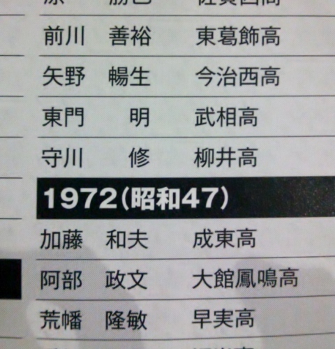 前回の続き。■1972年の東京六大学リーグは、春・秋ともに慶應義塾大が優勝した。前年秋から慶應にとっては史上初めての3連覇を達成した。その原動力となったのはエース・萩野友康(土佐高)の力投、そして清水東高OBコンビ・松下勝実、山下大輔の活躍があった。そして慶應大は、同年の全日本大学野球選手権に出場したが、決勝で山口高志を擁する関西大に敗退した。■またこの年は、初めて日米大学野球が開催された。日本代表選手を見ると、後にプロ野球で活躍する、懐かしい名前が並んでいた。 (wikipediaより)山口高志、山本功児、山下大輔、長崎慶一、藤浪行雄・・・。※(下表の見方)ポジション、選手名、大学名、学年の順。投手山口高志関西大4投手森部繁幸名城大2投手藤田康夫中央大4投手萩野友康慶応義塾大4投手中村憲史朗立教大3投手上田芳央明治大3捕手米谷延夫近畿大4捕手中沢邦男日本大4捕手田中昭雄関西大3内野手山本功児法政大3内野手坂口雅久立教大3内野手吉沢敏雄慶応義塾大4内野手東門 明早稲田大2内野手山口 円関西大4内野手山下大輔慶応義塾大3外野手生田啓一中京大3外野手長崎慶一法政大4外野手伊達泰司法政大4外野手池田和雄慶応義塾大4外野手藤波行雄中央大3■この第1回日米大学野球は、神宮球場に皇太子ご夫妻をお迎えし、皇太子殿下が国内のスポーツ競技で初めて始球式をされて開幕した(7月8日)。そして日本は山口高(関大)の力投が原動力となり、覇権を手中に収めた。しかし、この大会の第2戦で悲しい事故が起きた。7回、早稲田大の東門明(武相高)が代打で登場、三遊間へのヒットで出塁すると、一死後、藤波行雄の二塁ゴロの際、米国代表の遊撃手アラン・バニスターの併殺狙いの送球を頭部に受けて昏倒し、直ちに慶応大学病院に搬送された。右側頭骨骨折による頭蓋内出血および脳挫傷と診断され、5日後の7月14日11時35分、19歳の若さで息を引き取った。 その後、東門が代表メンバーとして着用していた背番号13は、日米大学野球選手権日本代表の永久欠番とされ、早稲田大野球部でも、東門の背番号9を永久欠番とした。(wikipediaより)下の写真は、『早慶戦110年史』(ベースボール・マガジン社)より。稲門倶楽部、早大現役部員名簿には入学年度と選手名が記されており、1971年(昭和46年)の欄に東門の名前が記載されていた。