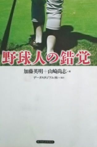 ■先日、縁あって(株)アソボウズ主催の『ID野球導入セミナー』に参加した。代表の片山宗臣さんをはじめ、楽天スコアラーの行木茂満さん、統計心理学の田中久雄さん、そしてフィジカルトレーナーの加納正則さんが講師を務めた。だいぶ以前、「ID野球」という言葉が世に登場した頃、その仕掛け人のひとりがアソボウズを立ち上げた片山さんだったと記憶する。その片山さんは独自のノウハウをもとに、これまでも大分・明豊高野球部などを技術指導し、今年は、群馬・前橋育英高のサポートをして甲子園優勝に貢献したという。片山さんの話だけでも、たとえ3時間、いや5、6時間ぶっ通しで聞いても飽きなかったろう。それほどまでに、片山さんには密度の濃いノウハウが詰まっているように思えた。今回、それは叶わなかったが、フィジカルや心理学を交えた総合的なアプローチは、これはこれで十分に楽しめた。■そして、ボクが興味をもったことのひとつは、野球の常識と思われていることが実は常識ではない、いわゆる「錯覚」であるということを、各講師が異口同音に語っていたことだ。例えば、こんな事例があった。「投げ込めば、スピードが上がる」「投げ込めば、コントロールが良くなる」のウソ。練習量に比例して上達するのは守備などごく限られたものであって、コントロール、スピードアップ、ヘッドスピードアップなどは、それに当てはまらないという。いや、当てはまらないどころか、逆に悪いクセがついて弊害にさえなる。■常識と思っていることが、実は「錯覚」だったのかぁ・・・??? 過去にあった常識が、今では真反対になった事例を思い出してみた。「練習中に水を飲まない」「水泳禁止」「利き腕では箸より重いものを持たない」などなど。これまでも、結構たくさんあったのだな。今、手許に『野球人の錯覚』(加藤英明+山崎尚志著、協力=データスタジアム株、東洋経済新報社、写真も)がある。前述した視点とは異なるが、 この書籍にもタイトル同様に、さまざまな「錯覚」が紹介されていた。例えば、「先頭打者に四球を出すと、試合の流れは悪くなるか? また、四球は安打より悪いか?」と問題を掲げ、プロ野球の実データを使って分析を試みている。よくテレビでは、「先頭打者に四球を出すと流れが悪くなりますよ、安打より良くない」と解説者がしたり顔で言うことがある。そこで著者らが先頭打者を四球・安打で出塁させた場合の失点確率を分析したのだが、実は四球より安打を打たれたケースの方が、(失点確率が)高い数値になっており、「先頭打者に四球を出しても、安打(単打)と比べて流れが悪くなることはない」と結論づけていた。ボク自身、「流れ」という言葉をよく使うが、これからは注意をして使う必要がありそうだ。※もちろん、一般的に使われている「流れ」に関して、上記書籍はすべてを錯覚と言っているわけではないので、その点だけ最後に付記しておく。
