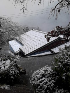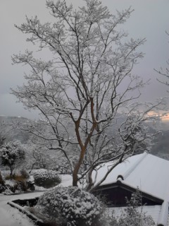 我が家は標高が高めなので…、雪が降っています。