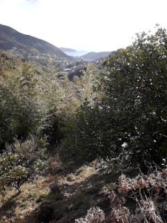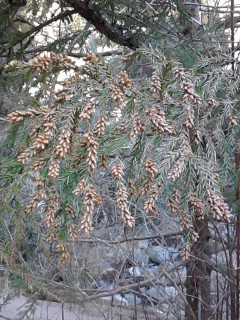 家の周りを歩いてみました。スギが真っ赤でした。