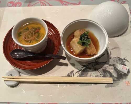 食前酒、前菜、タルタル香草風魚のサラダ仕立て、鰈と豆腐の揚げ出し、