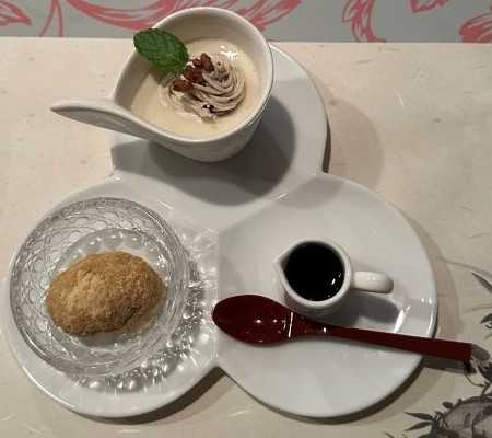 豆乳マロンプリンとミニおはぎのデザートでした。