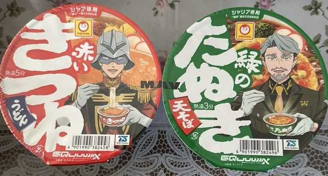 シャア専用赤いきつねうどんとシャリア専用緑のたぬき天そばが