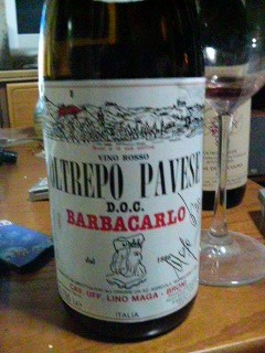 Oltrepo pavese 1989 生産者Barbacarlo おおおおこのすっぱーい感じはブラッドオレンジ?知人の店に持ち込んでしばらくはこのワインだけで・・・何も食べないでいたら店長がイチゴを出してくれました ワインはしばらく放置してイチゴを楽しんでマシタちょっと一杯このワインを飲んだらびっくり!!とてもあいますね 甘酸っぱいでも飲みやすくて簡単に開けてしまいましたサラダやフルーツにあう赤ワインですね