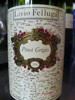 ピノ・グリージョ2004 生産者リヴィオ・フェルーガ今年の3月にとある居酒屋で出会ったワインです ここではいつも青森の日本酒 「田酒」が好きでその日もそれをと思っていたところ冷蔵庫の中にワインを発見!! オヤジさんに聞いたところ白ワインは結構飲むらしく自分用においていたとのこと「一杯だけお願い」とお願いしたらなんと日本酒のグラスに枡をつけて飲ませてくれました焼き鳥にピノ・グりージョ 素敵な出会いでした苦味?と塩辛い?美味しい!!焼き鳥にあいますね!ちびちびと舐めるように飲んだのを憶えています