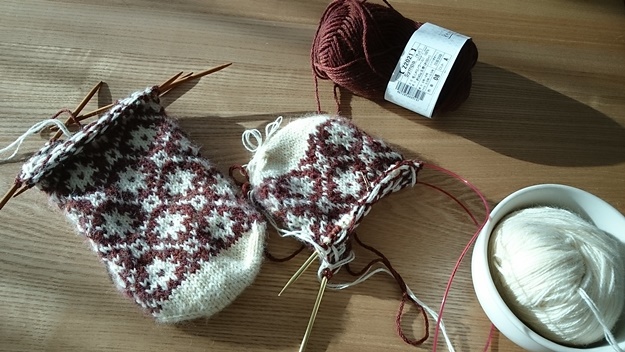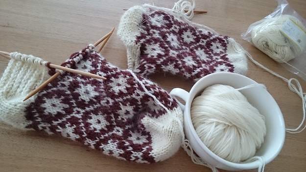 昨日は久しぶりに雪かきの朝でした。今朝もさらっと。今年はラクしています。。。始業式の中学生は、ばたばたとでかけました。娘は高校受験ももうすぐ。心配でいっぱいなのは、私ではなく本人のハズなのですが???余裕有り余る態度に母ムラムラ。。。はー、精神衛生に悪い^^夫セーター試し編み8センチくらい編みましたが、暗い色はつらくて、、小物に逃げています。ニットマルシェ vol.18 2014秋/冬号から【楽天ブックスならいつでも送料無料】ニットマルシェ(vol.18(2014秋/冬)) これをつま先から編んでみようかと思いましたが、まち部分がむずかしい。無理だったらかかとはかえようかな。。。