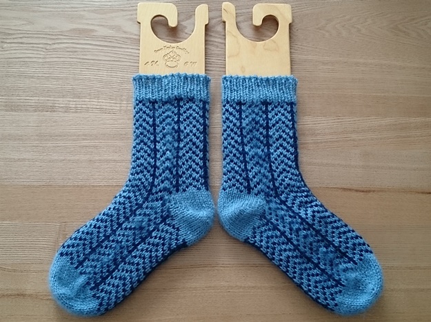 ん~、このかかと、よいな~。 参考にした本「手編みのくつした」使用糸 フェアレディ50 ライトブルー(80)、紺(28)使用針 輪針3.6mm & 3.3mmかかとはitosakuさんの動画 ☆ ☆ を参考に。