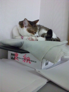 愛ちゃん、残業に付き合ってくれてありがとぉ☆って言おうと思ったら…へんてこな場所でのんきに寝てるよ(-.-;)