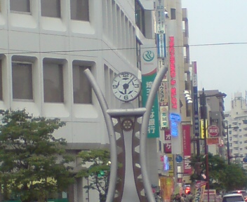 駅前の時計までサッカーの絵柄です!