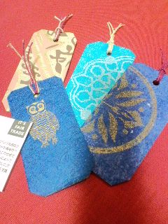ふくろうの上の画像の栞は本当はもっとpopな感じで金色も一部入っているのですが