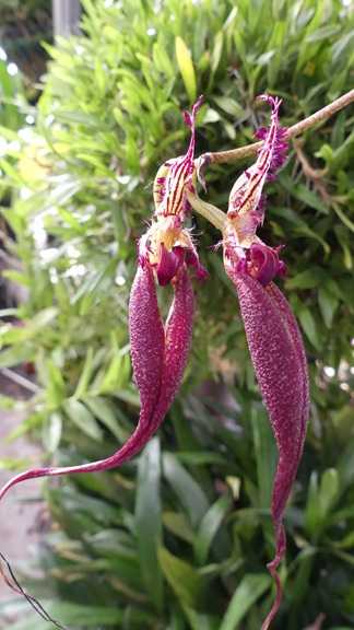 ゴンゴラ ガレアタが咲きました!温室に入れると咲かなくなってしまうことが多かったので咲かないと思っていましたよ!もう1本咲いたら終わりそうです!昨日も晴れて最高気温は19.0℃、最低気温は5.2℃と温かかったです!今日も雲が多めです!富士山も見えていましたが寒そうでしたよ!昨日も暖かかったですにゃ日に当たっていると暑いくらいだったですにゃ今日は晴れても寒い予報が出ているですにゃ明日はもっと寒くなる予報ですが、本当かな・・・昼と夜との温度差がすごいですにほんブログ村