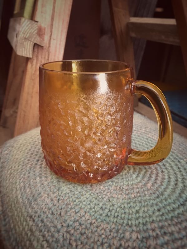 アンバーのジョッキグラス。 私物化しようか迷ってしまいました(*´∇`*) 明日も営業日。 11時ー15時 悪天候の場合お休みします(^人^)