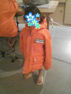 上はダウンジャケット着てるけど、下は半パンにビーサン