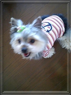 新しい服を着せる前に、杏のシャンプ!杏は、毛が多くって・・・凄い量なんです。シャンプー前に、自宅でカットしてみました。 顔が大きいですね~あんず、正面から撮ろうね「はい・・杏、こっち向いて・・・いいお顔は」 杏は、いつも笑っているね~。もう一枚撮ろうね杏は、天真爛漫のマイペースです。でも、この顔は「母親のまなざし」ですよね 「ねぇ・・何しているの?僕は???」「ジェルも撮るの?一緒に並んでね」 ジェルは、カメラを向けると、何時も固まってしまいます。中々、良い夫婦(めおと)でござる