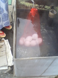 朝食前、野沢温泉で温泉めぐりをしました。外湯のお風呂の前に、生卵を入れる場所があるんです。そしてお風呂から出てくる時には、温泉卵が出来上がっているんですよ。生卵は、ネットと一緒にお店で売っています。 都会だったら、お風呂から出てきたら、なくなっていますよね。そうそう・・・ほとんど啼かないジェルが、夜中1時過ぎにに『ヴ~~~~ッ・・ッワン!』と、2回。ドタン!・・友人の5歳の子がベットから落ちていました。その凄い音に、ジェルも驚いたようです。15分後、今度は2歳の子がベットから・・・。友人は、『ジェルなんで啼いているの?』と寝ぼけ眼。『○○ちゃん、落ちてるよ~!』・・・・・・・・・・・・・・・・・次の写真は、朝市です。温泉饅頭・山菜・野沢菜コロッケ・わたあめ・民芸品・・etc・・いろんなお店が出ていました。しっかりお土産を買った後、anne様ご一行は『お墓参り』に・・・風が凄くって、お線香に火がつかないんですよ。その後、景色の良い飯山城跡へ行って見ました。 ぜ~んぶソメイヨシノ、桜の木なんです。桜が咲く頃には、数百本の桜が一斉に咲き、見事ですよ~。 今は石垣しか残っていませんが、信濃飯山城は、越後の上杉謙信が、戦国時代に信濃攻略の拠点として築城したお城です。武田信玄と川中島合戦のときも拠点としたそうです。 ところが、敵から攻められ城下町が燃えているのを見て、『もうダメだ!』と思った武将が自ら城に火をつけ、城が燃えてしまった・・と聞いたことがあります。今度は、さくらの咲く頃に来ようかな。