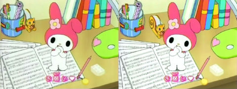 まだちゃんと見てないのですが、もうマイメロも第5話です。やっとちょっと作画が崩れてきたかな?って感じになってきました。今回の話はチアガール姿の歌達が出てきてマイメロがデカチビ光線を浴びないのにマイメロハウスのベッドに吸い込まれる瞬間縮小してるように見えたりしてた気がします。さらりと見ただけなのでもしかしたら間違ってるかもしれませんがそんな感じです。そして初めての人間の画像、なんか作画崩れてる気がしませんか?もしかしてこういう構図なのかな・・・眠いのでまた明日。