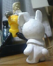 反骨日記さんによるとどうやらストラップはグッズとして出ていないようです。これは自分で作るしかないですね。芯ですのですごくやっつけです、3分もいじってません。ていうか早く固まれ。 今後の予定。固まったものを芯にしてどうにかする、ファンドのままじゃ使用に耐えられないので、みんな大好きチカン作業で硬いモノにする。久々に更新されたAyumuBlogの社長さんがたぶん余っているFRPをくれるでしょうからそれで最後にどうにかして塗る。