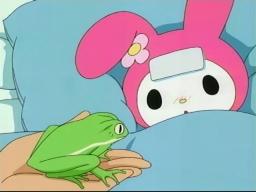 昨日の続きで第8話です。まだAパートですが真菜が飼っているソバージュネコメガエルです。(マイメロよりも)かわいいですね。真菜のスタープラチナ並のスタンド攻撃です、もちろん攻撃対象はマイメロなのでマイメロはリタイヤしちゃいます。この番組は本当にJOJOネタが好きですね、歌がJガイルの旦那(*絵)だったり・・・8話も後半は時間を加速させるメイド・イン・ヘブン並みの魔法を使ってきます。そう考え始めるともう↓これがハーヴェストにしか見えません!カエルもきっとゴールド・エクスペリエンスでしょう。と、JOJOネタはここまでにしておきます。JOJO知らない人には何言ってるのかわからないでしょうしね。8話のゲストキャラのロリータファッションの教子オバちゃんキツイです。従姉妹のハルミちゃんはまだ若いので「そういうひともいるのよね・・・」で済ませても問題ないと思いますけどね。とりあえず敵発見変身!!今回のBパートはロリータファッション好きの人向けに作られたのでしょうか、マイメロやクロミ、さらにバグまで変身します。さらに無駄に気合が入っているらしく魔法使ういつものシーンもコスプレバージョンです。顔がいつもみたいに崩れないのでこれからも今回のを使ってほしいです。