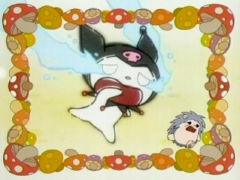 待ちに待った9話「縄跳びたくさん跳べたらイイナ!」です。先週の予告でマイメロが食べていたものがやっと判明しました。どうやら黄色い物体はハンバーグみたいですね。そして歌は物食べすぎ今回は朝食支度と夕飯の食事シーンがあったのですがどちらもマイメロが作ってたようです、3人も娘いるんだから一人くらい料理作ったっていいと思うんですが…歌はマイメロに作らせていた物をすごいペースで延々と食べていました。前半はあまり見る部分がなかったのですが、クロミがぐれてみたり・・・なぜかカメレオンの矢沢思い出しました。これだけ見るとマイメロがパパを毛嫌いしてるように見えます。今回もマイメロは前回のお猫様に追われていました、噴水で調子に乗ってポーズなんか決めているのが悪いんだと思うんですけどね。とりあえず前半のサービスシーンはこれかこれでしょうか(きっとシャドー枕パンチ)あとDVD1巻の発売決定したみたいです、4話入って2,205円は安いですね、でもCDみたいに二枚は買いません。クロミノートも更新。