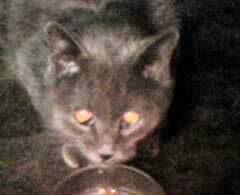 最近野良猫がうちによく来ます、うちでは2匹猫飼っているので、そのおこぼれを狙ってきてるようです。私を警戒しながらムシャムシャお食事中にパチリ。 ロシアンブルーっぽい毛並みなんですが目の色が黄色なので雑種でしょうか、お金払って飼うタイプの猫だったら野良になってるわけないしね。