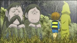 今回の鬼太郎の敵はアカマタ、アササボンサン、やし落とし、ポ、ランスブイルの南方妖怪5人衆。私は妖怪チンポがポという名前に変更されてて酷く悲しみました。 でも一反木綿を腰巻に使ったりたぶん放屁で飛んだりをさわやかな品のないネタを披露してくれたのでまぁいいかな・・・一反木綿臭そうでした。 アカマタが予想以上にすごくいい奴になっていてビックリしました。 南方妖怪はあんまり悪さをしようとは考えていないみたいですが、結局力では鬼太郎たちは勝てなかったので西洋妖怪や中国妖怪に取り込まれたら驚異ですね。【RA】 これに出てくるアカマタは嫌な奴だった気がします。