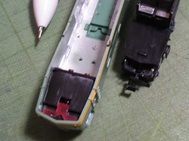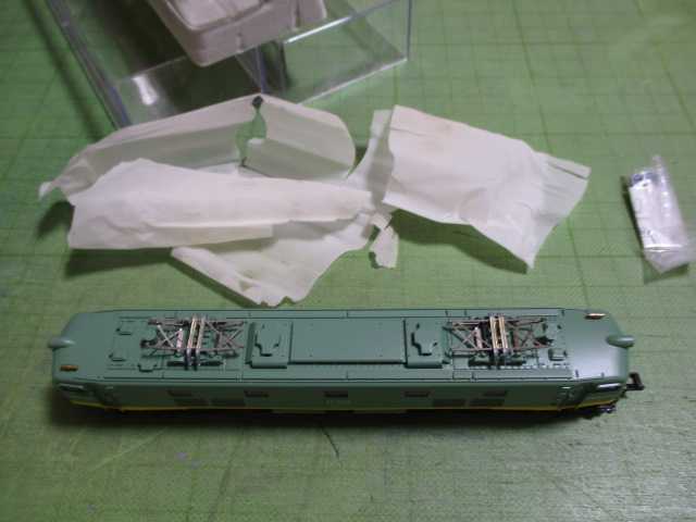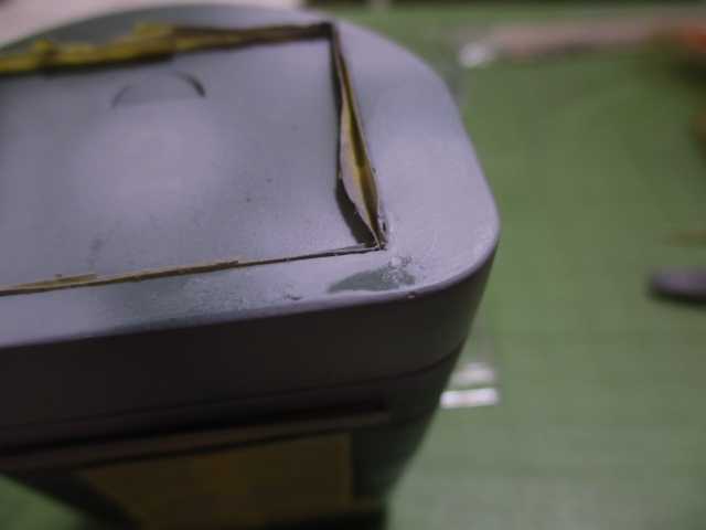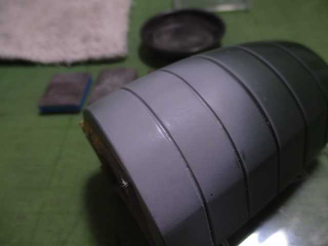 屋根の凸凹部分をスポンジヤスリの水研ぎで整形したところまで。
