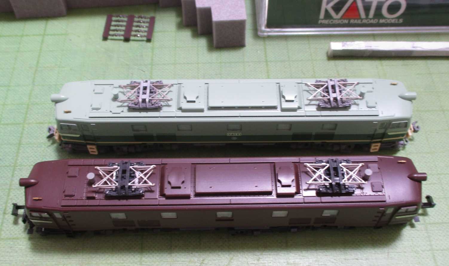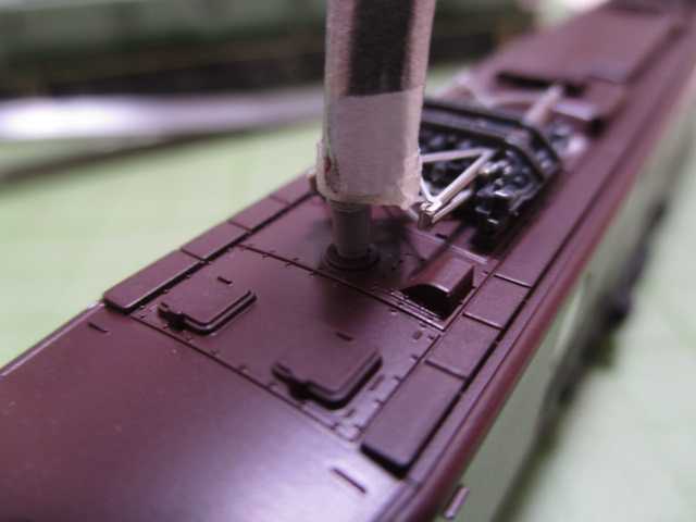 と、青大将試験色機にはホイッスル、茶色原形機にはホイッスルと避雷器を取り付けたところまで。