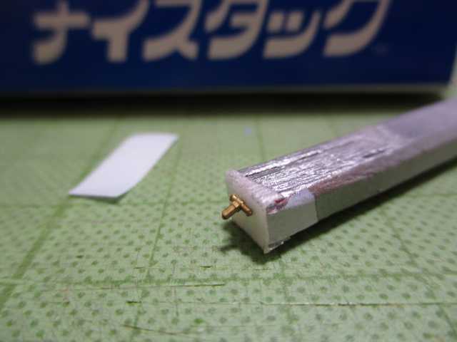 ナンバープレートと同様に、両面テープを貼ったワリバシの先端で