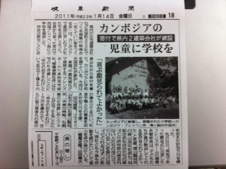 岐阜新聞に取材を・・・ 今朝の新聞に青山製材所の記事が載っています。タイミング的に・・・・決して伊達直人ではありません。【岐阜新聞 1月14日】ズームアップしてみましょう。【真ん中の↑のが私:社長の青山しげおです】本当に現地の子供たちも、親さんたちも、政府の方たちも、喜んでいただけました。【幸せのおすそわけ】私たちは、“家をつくるお仕事をさせていただいています。”家を、持てる幸せ、家を、改装できるしあわせ、何より、それをお手伝いさせて頂ける。幸せを感じています。そして今回、このような活動に参加できる幸せを、お客さまとともに味わえてとても嬉しいです。今年初回の見学会は・・・羽島市竹鼻町で開催します。1月29日(土)~30日(日)の二日間詳しい内容はもうじき、ココでアップします【幸せのおすそわけ活動:募金箱】これも、併設します。是非、ご参加ください。詳しいことを知りたい方は、こちらからお問い合わせください。