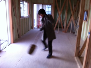 本日2回目の書き込み。昨日は、痛恨の一回飛ばし・・・・寝てしまった・・・遊び疲れて、彩華と“こたつ寝”をしてしまった。私も、人の子です。今日は、2回目の書き込みで許してください。現場を見てきました。河合ちゃんの工事現場日記をご覧ください。むっちゃ早いです。【この現場の棟梁の松岡さんです。】後ろ姿でごめんなさい。家が、どのように施工されて行くのか?お気に入りに登録して毎日チェックしてください。今夜もお客様がお見えになりました。生命保険の見直しと・・・・プランの打ち合わせ・・・・先ほど10:00に帰られました。御苦労さまです。河合ちゃんも・・・御苦労さま!私は・・・【29~30日の見学会チラシを・・・・】【輪転機で印刷中・・・】極力、無駄な経費をかけないようにやってます。高価なチラシじゃなくてすみません。では、では、==========================◆□◆ 家を建てる前に必ず知っておきたいこと 365歩のマーチ 365歩の15歩目【LESSON 15】「ローンの金利はいつ決まるか?」住宅ローンの金利は申し込み時ではなく融資実行時に決まるのがほとんどである。※新築の場合、申し込み時と融資実行時にかなりタイムラグがあるので、その間に金利が上昇してしまうリスクもある。知っておくべき情報である。※例外的に申し込み時の金利と実行時の金利の低い方を選択できる金融機関も出てきている。競争激化の恩恵といえる。=================================※地元の、西濃信用金庫さんは、 申し込み時の金利と実行時の金利の 低い方を選択できる金融機関さんです。