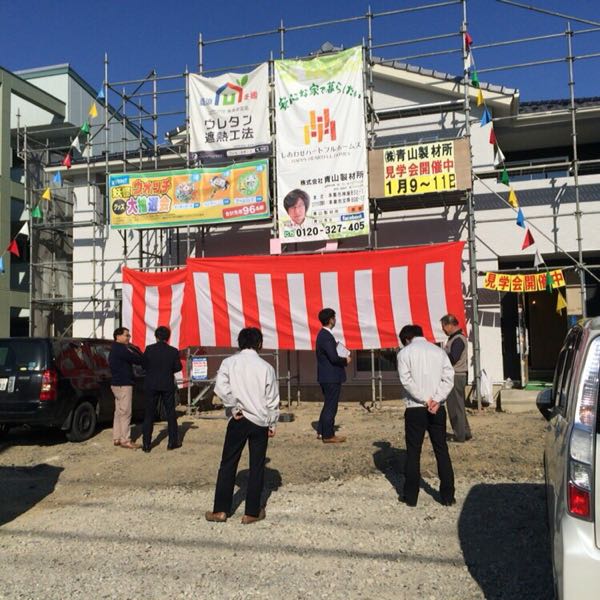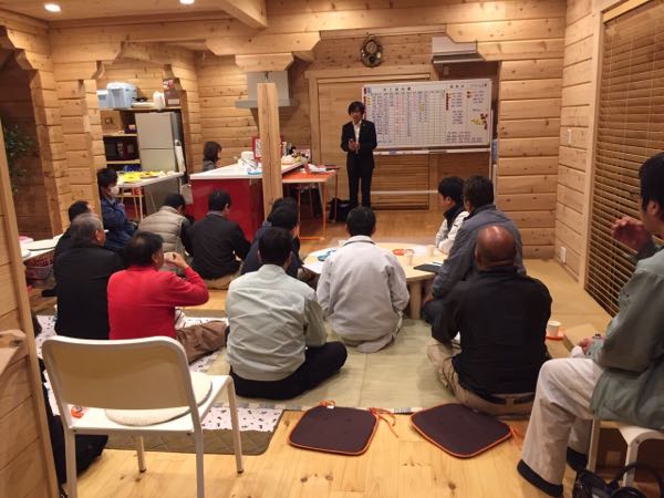 ログハウスで見学会です。 設計士さんと、ご参加! 幸せ家づくり相談! 本日は… 羽島郡で、雨の中でしたが、 地鎮祭でした。 岐阜市でお施主様と、 配置確認! 夕方からは… CAD業者さんと打ち合わせ。 その後、新年会です。