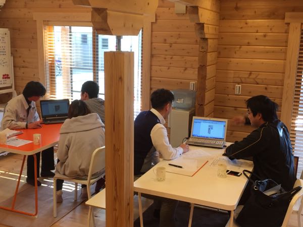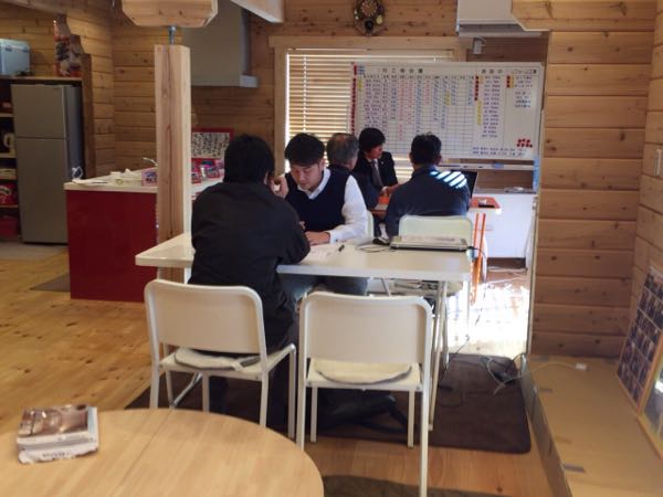 本日は、寒かったですね。 しかし… ログハウス営業所での見学会は… 暖かいです。 具体的な図面で相談… 事前審査申し込み… 保育士? 再来のお客様… 見学会終了! 哲也くんと、彩華… 仲良く後片付けです。 お疲れ様でした。