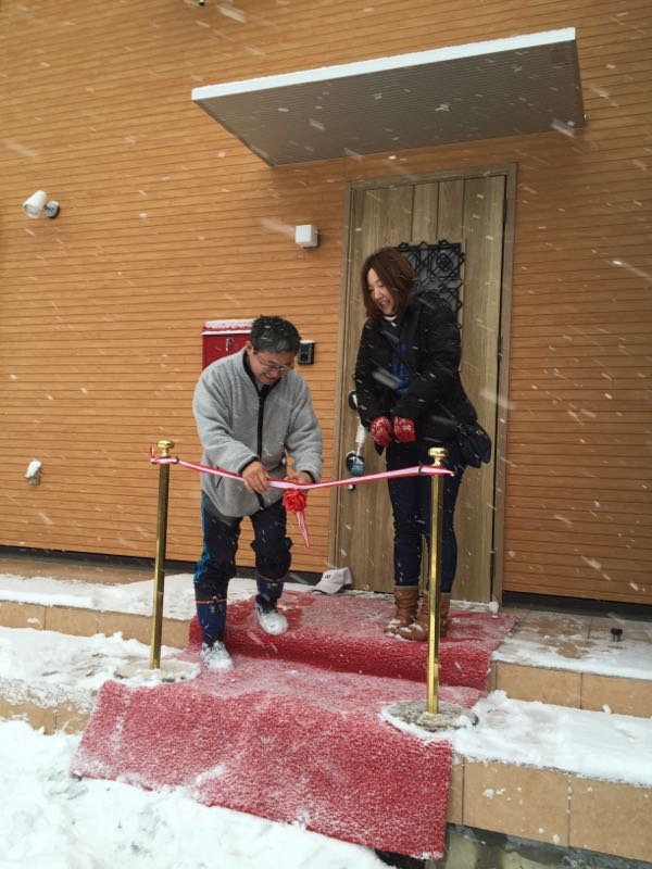 朝おきましたら… 雪・雪・雪! 一面銀世界です。 朝の7時30分から、お引き渡し式 みんな揃って、記念撮影! ピースです。 ご主人の趣味のミニカーが… 早速並べてあります。 掘りごたつ式の素敵なテーブル! 新築、おめでとうございます。 末永くよろしくお願いします。 本日は、1月の見学会の最終日です。 ログハウス営業所でやってます。