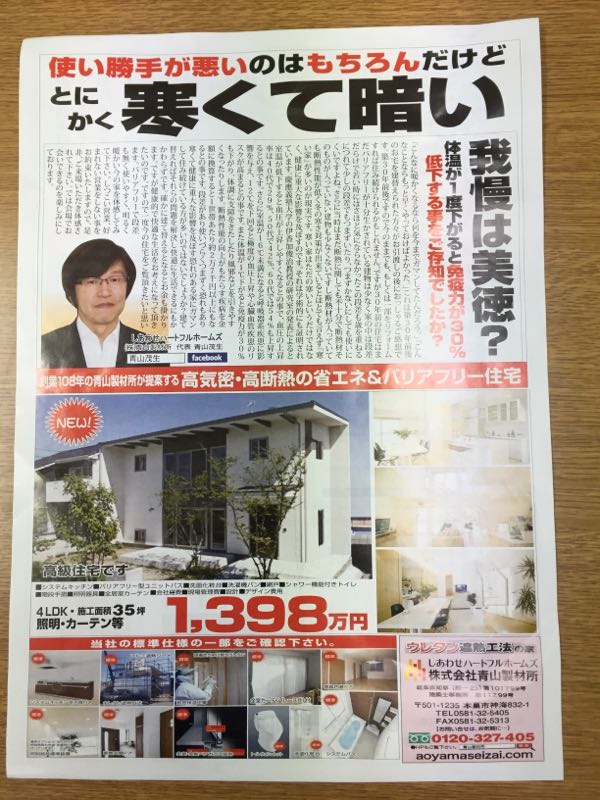 本日の折り込みチラシ… 入ってました。 明日から3日間… 1月の現場見学会を開催します。 1月も、長期期間の見学会をやります。 こんな感じです。 お出かけ下さい。 こんな感じです。 こんな感じの間も無く完成の現場も… 先ずは、 週末の3日間に、ご参加下さい。