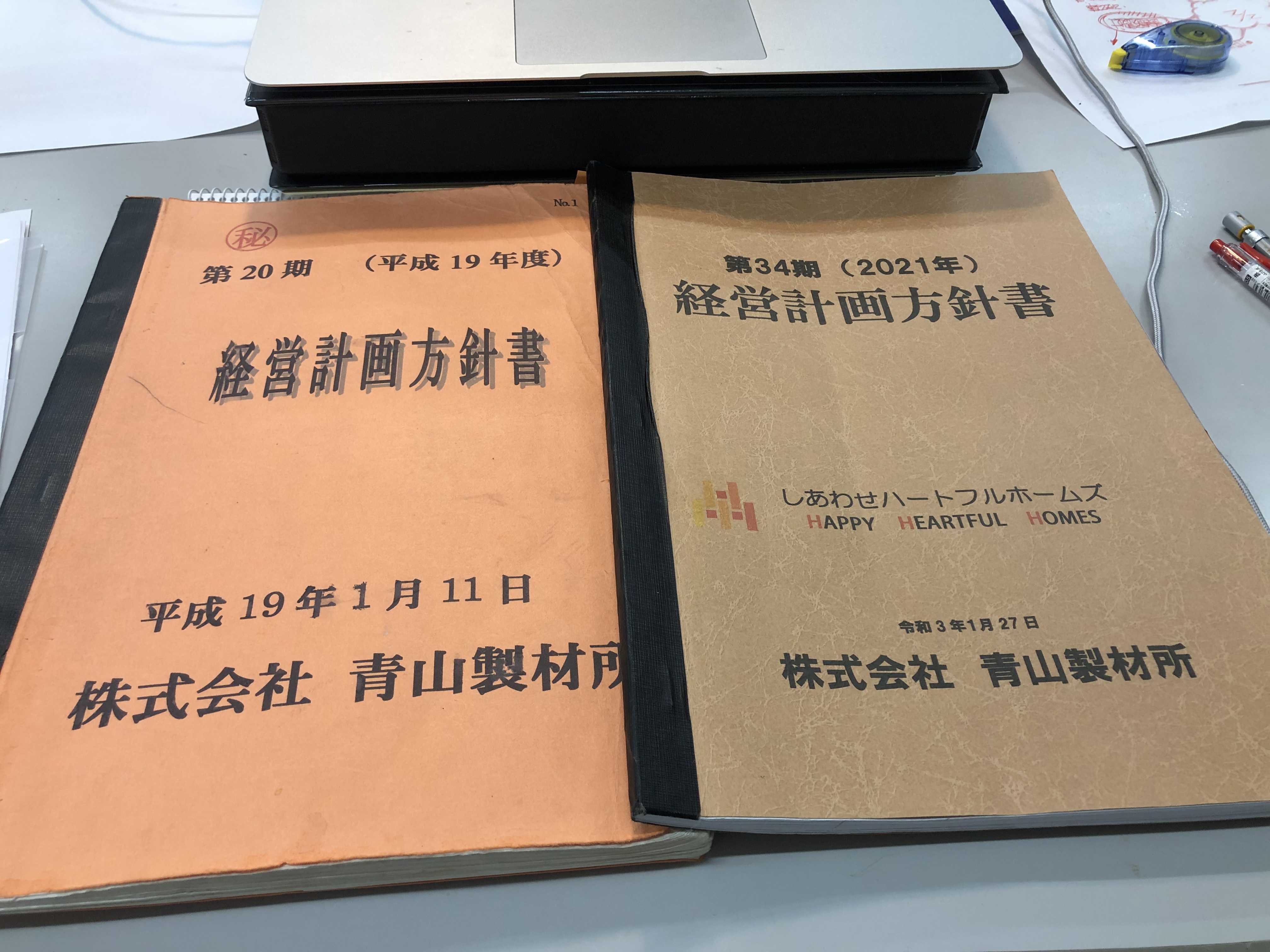 日曜日は、朝10時から夕方の18時まで…zoomセミナーに、参加。こーい1日でした。その後は…日付が変わるまで、第35期 経営計画方針書を作成!第20期 平成19年の経営計画方針書は、製材所から工務店に業態転換した時の経営計画方針書。振り返りながら、最新の計画を作成!