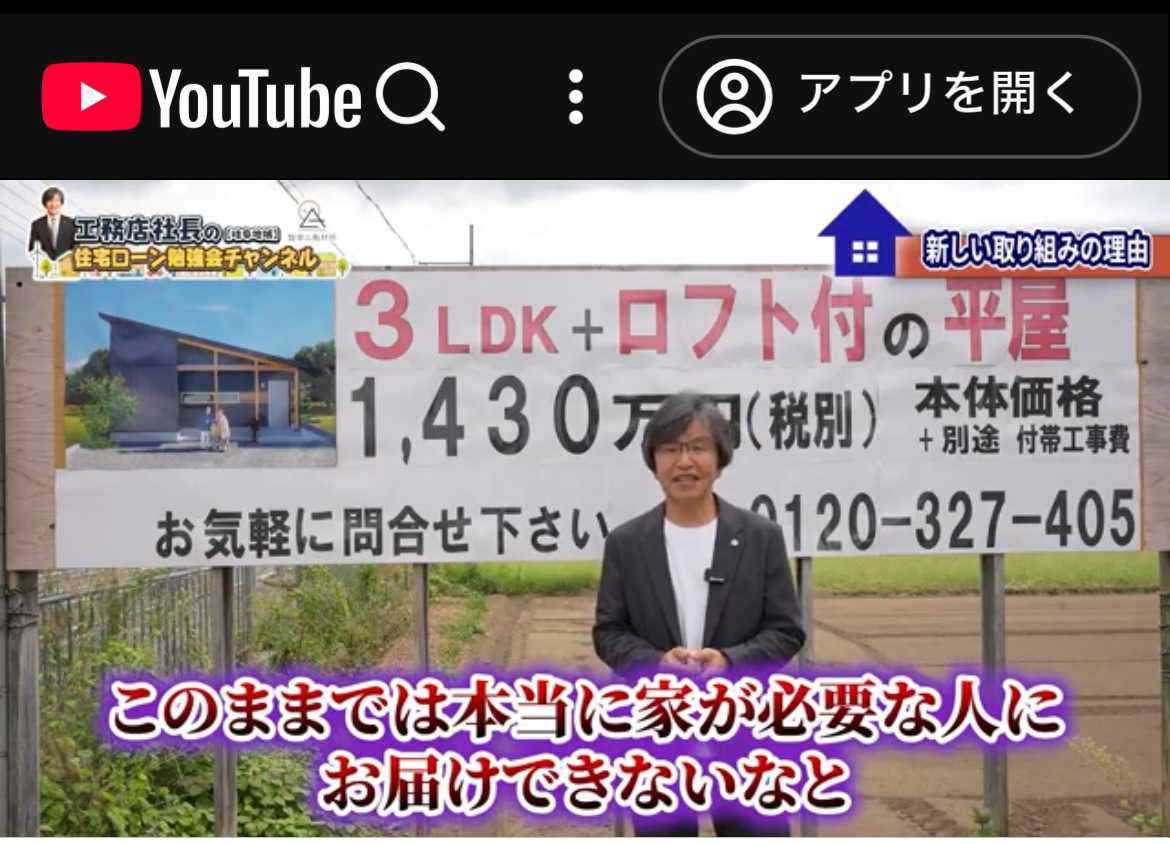 本日、18時に…YouTube新作動画がアップ⤴️されました。工務店社長の住宅ローン勉強会チャンネル!です。(株)青山製材所しあわせハートフルホームが、新たなご提案です。