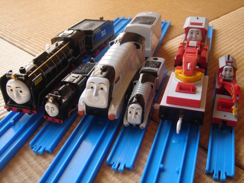 昨年のフワのクリスマスプレゼントはプラレールでした。トーマスとレールのセットは甥っ子からおさがりを貰ったので違うキャラクターの入ったもの。横に並んでいるのはカプセルプラレール。ガチャガチャなのでなかなかコンプリートできませんが、やっとプラレールのセットと同じのが揃ったので一応記念撮影。ヒロスペンサーロッキー猫の毛とか付いてますが気にしない方向で。家中がトーマスで埋め尽くされそうですが、フワのトーマスブームはまだまだ終わらないようです。あ、カプセルプラレールでソドー島を再現するのは諦めました 【送料無料】プラレール きかんしゃトーマス 伝説の英雄(ヒロ)にんきものセット ヒロ・ロッ...